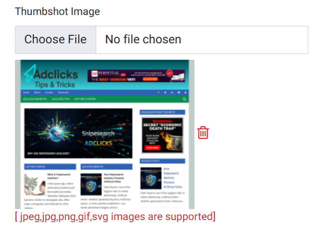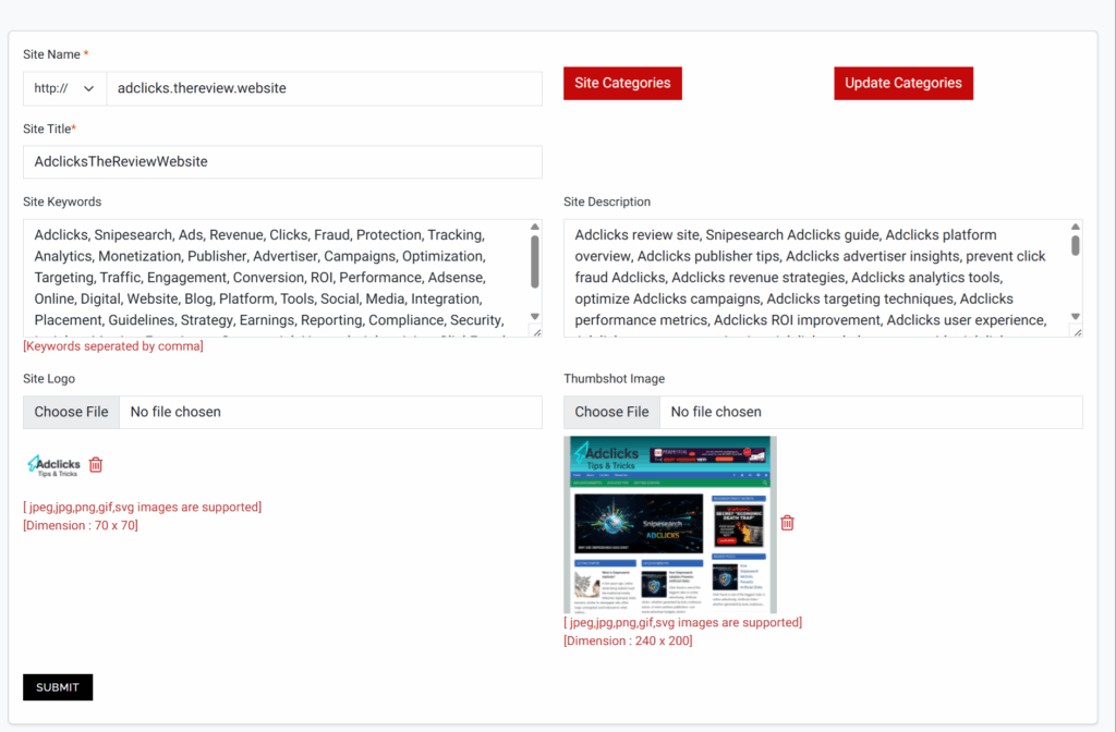 Providing a screenshot allows the admin team to verify the content of your site. This step is critical to prevent click farms and ensure compliance with Adclicks policies.