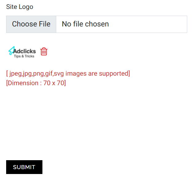 A site logo is required to visually represent your website. It helps administrators quickly identify your brand and is used in various reports and dashboards.