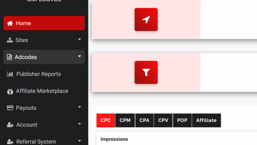 - PHP / POP ads – popups, pop-unders, or new tab ads (CPM-based)