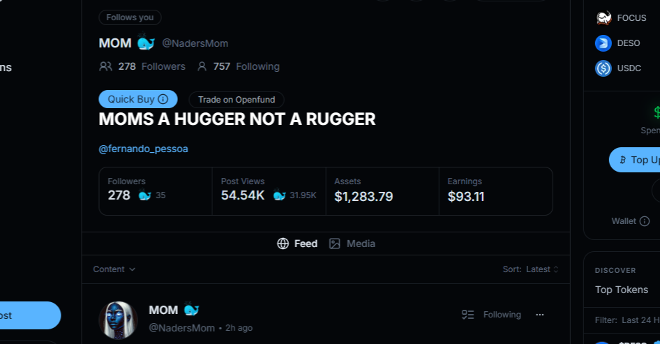 Why does this matter for a publisher? Because Openfund can amplify the financial aspect of your presence on Focus. Let’s say you launched that $RENEW token for your renewable energy content. On Focus, your followers can trade it casually. But outside of Focus, on Openfund, even people who aren’t into social media might discover your token if it’s performing well. Openfund has its own user base of traders looking for promising projects. It even allows algorithmic strategies and bots.