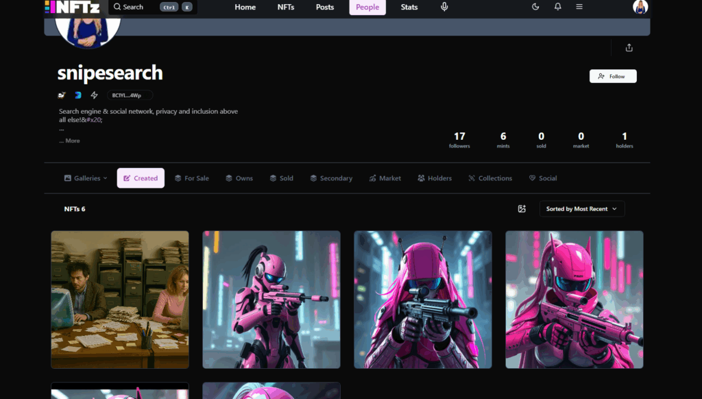 Now, let’s talk NFTz – the NFT marketplace in the DeSo world. NFTz is described as a social NFT marketplace, supporting all sorts of digital collectibles from 3D art to audio, with auctions and galleries. How does this connect to Focus ? In a few ways.