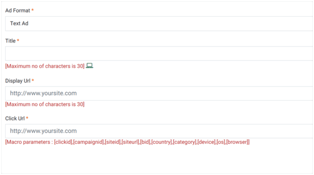 Once the information is filled in, the system generates a live preview of your text ad. This step is not optional; it is the checkpoint that ensures everything appears as you expect. The preview shows how the ad will render in standard placements, and if VAST is enabled you can see how it fits in video-supported environments. This is your chance to confirm that nothing is cut off, that the call-to-action is visible, and that the display URL looks professional. Skipping this review risks pushing out an ad that confuses or repels users. Always pause here, check alignment and flow, and if possible, share the preview with a colleague before moving forward.