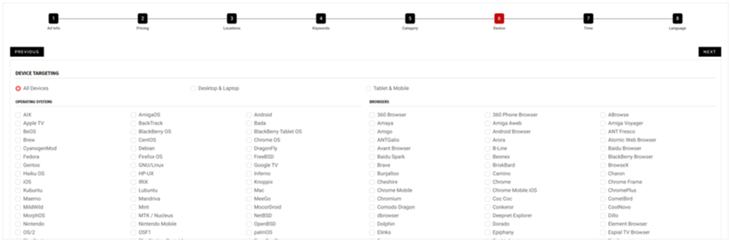Snipesearch even allows advanced combinations — such as serving ads only to Ubuntu Linux users on Firefox, or excluding Edge users on Windows 10 if that’s not your audience. Beginners may find the list intimidating, but this level of precision is what gives you a competitive edge. It allows you to cut irrelevant impressions out entirely and put every CPM dollar where it counts.