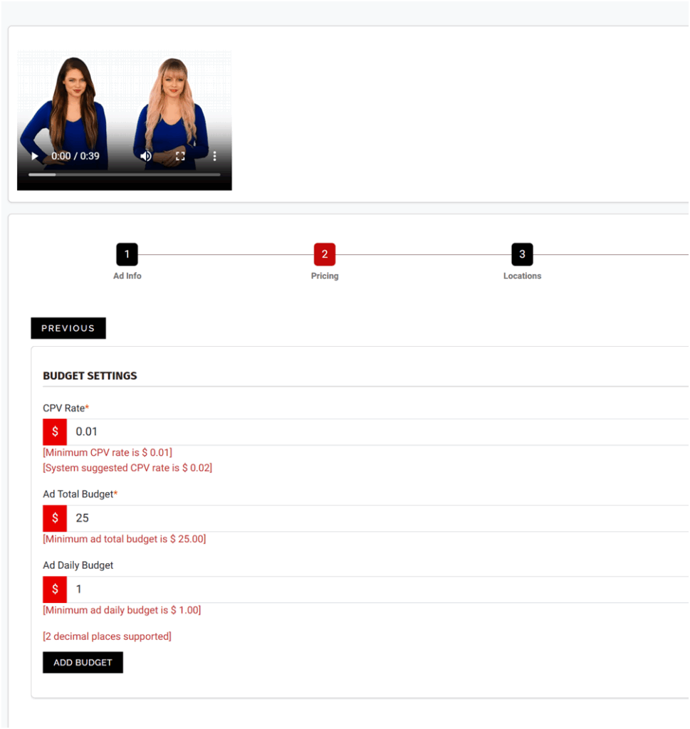 Step 8: Setting Budgets and CPV Rates
