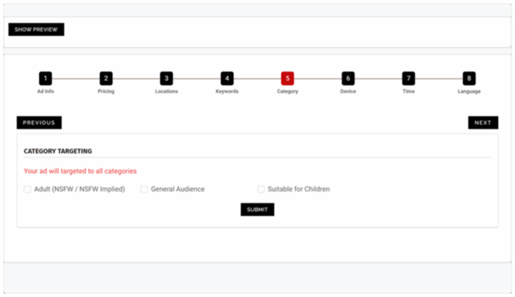 Selecting the wrong category can stall your campaign. For instance, if you classify an adult-oriented offer as “General Audience,” the ad is likely to be rejected or suspended until corrected. Mislabeling also risks your ads appearing in environments that are not compliant with regional regulations.