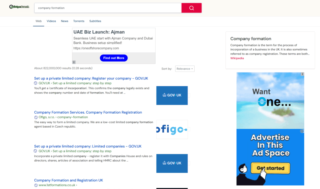 Right-side ads act as an additional sponsored suggestion while the user views results. They are visible without requiring scrolling (on most screens) and remain in the viewport even as the user looks at top results. By placing an ad here, Snipesearch increases the chances that at least one sponsored message is always in view, even if the user skips over the top text ads initially. This spot is especially useful for visual or display ads, but text ads can appear here as well. It’s clearly labeled as an ad, just like the top listings.